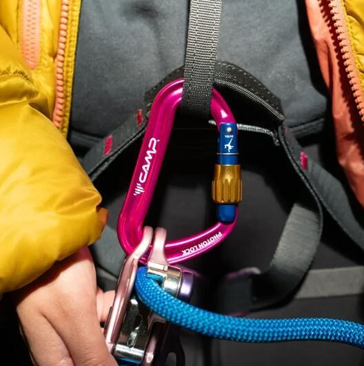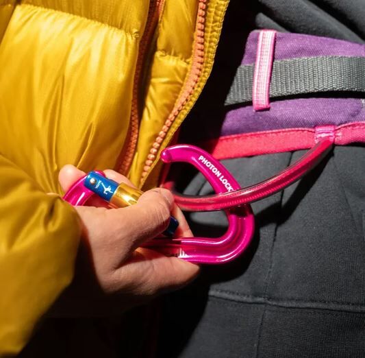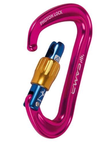 The Photon Lock Janja is the anchor carabiner of choice for mountaineers and multi-pitch climbers. Its full-size design gives it great versatility for any kind of climbing. I-Beam construction delivers a high strength-to-weight ratio while still maintaining a rope friendly radius. The SphereLock nose makes clipping ropes, webbing, chains and pro easy.