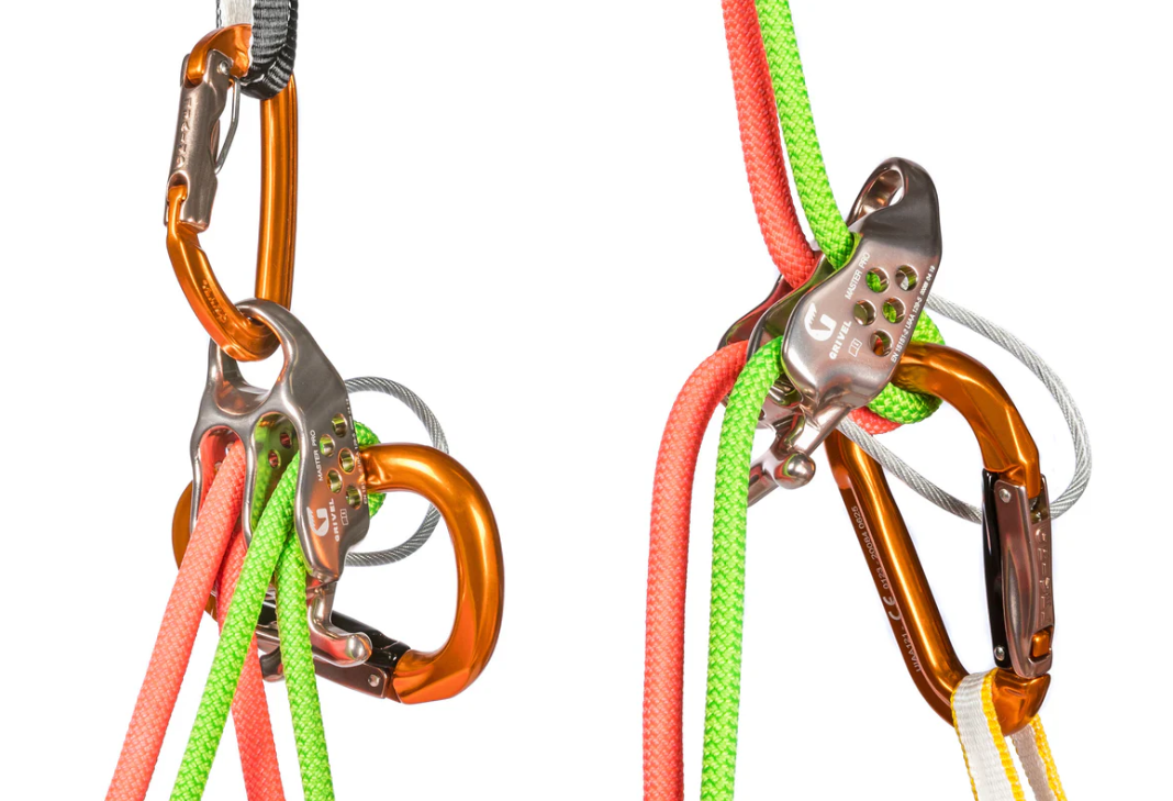 Master Pro was created for belaying and rappelling. It is a versatile, dynamic and reliable tool to minimize the force transmitted to the anchors, the belay and the wear and tear over time of the rope. It can also be used in guide mode as a self-locking plate, to belay a second. The two "horns" that are placed at one of the two ends have two main functions: