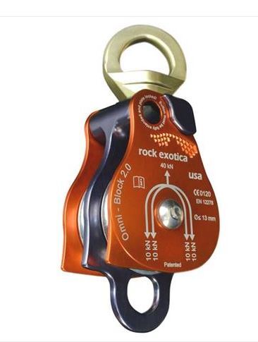 The Omni-Block combines a swivel and pulley into one tool, and incorporates a unique sideplate that opens while the pulley is still attached to the anchor. Traditionally, a pulley is connected to a swivel by a carabiner. However, the Omni eliminates the need for the carabiner, reducing length and pieces of equipment in the rigging system. The short length of the Omni is important when used in high-angle, confined space or other space-sensitive rigging environments. The reduced weight of the Omni will make hauling your gear easier. Additionally the Omni sideplate can be opened without detaching from the carabiner. Traditional pulleys require removing from the carabiner to change the rope. With the Omni, the user is able to do this while the pulley is still secured.